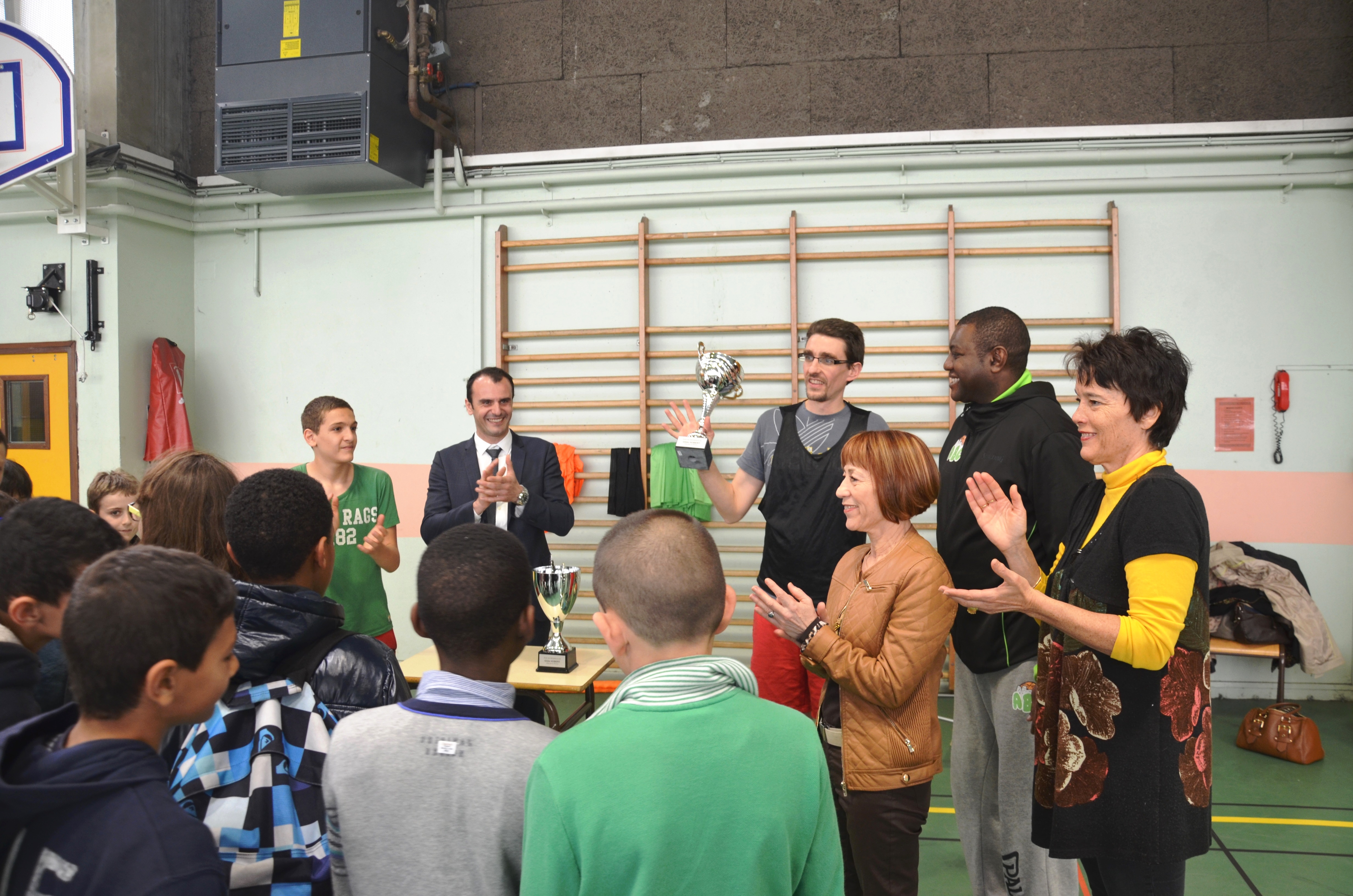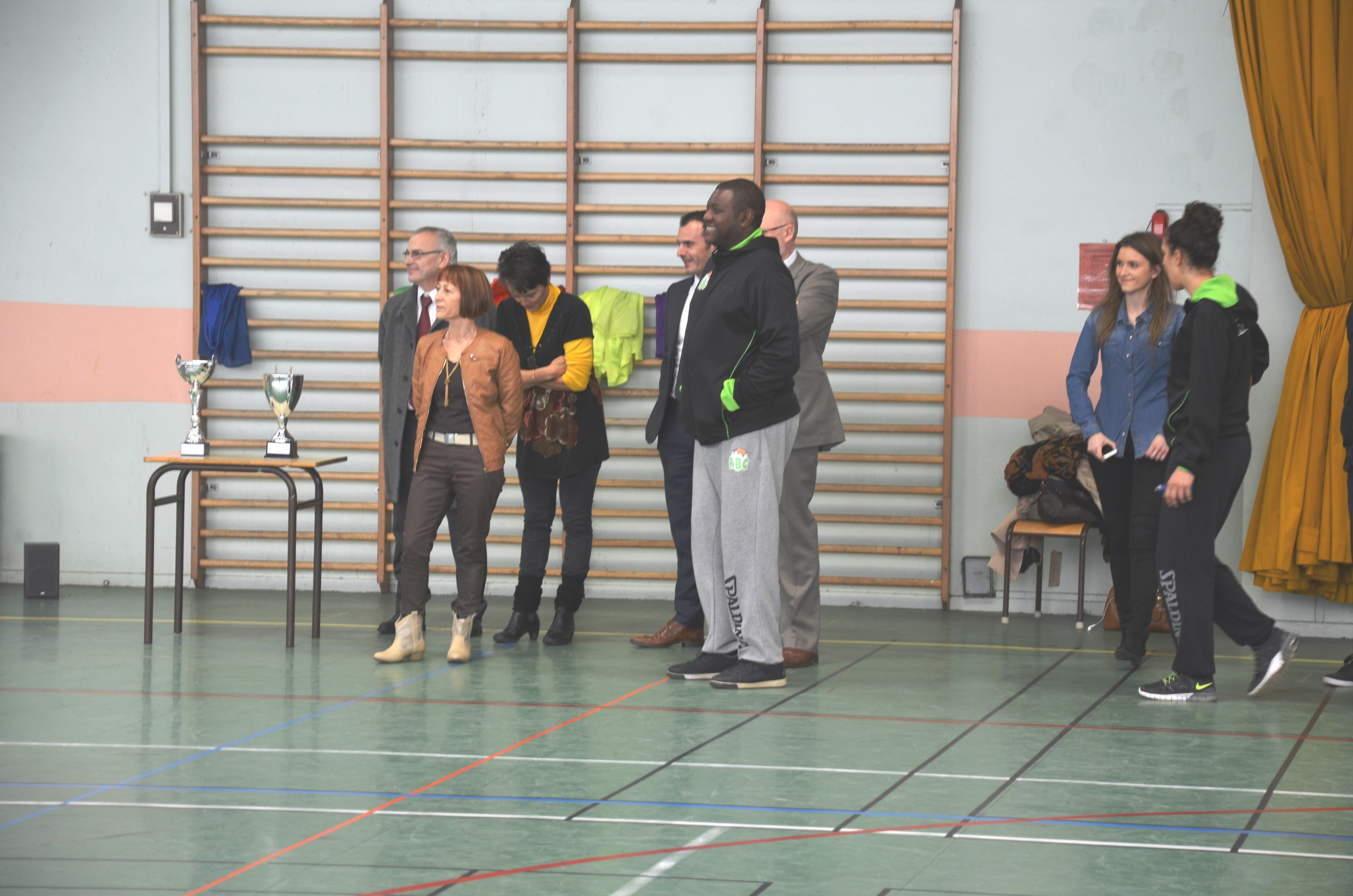 Je tenais aussi à remercier les joueurs, les coaches des deux équipes, les arbitres, marqueurs, chronométreurs, qui nous ont offert un beau spectacle, avec une mention spéciale à Jonathan Rousselle joueur professionnel à Cholet Basket qui nous revient de sélection en équipe de France, toute l’équipe du Stade Roubaisien représentée par Laurence Matthys la Présidente que je vous demande d’applaudir, Sauria Rédjimi proche de Jean Pierre Rousselle et passionnée de Basket.